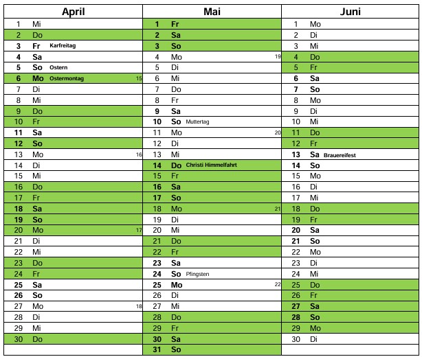 An geöffneten Wochenenden